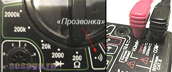 Для измерения сопротивлений до 2000 Ом (2 кОм), целесообразнее пользоваться режимом типа «прозвонка» (смотри первое фото). Вообще это очень удобная штука, особенно если Вы занимаетесь прозвонкой кабеля, ведете монтаж проводов или проверяете контакты электрической схемы в труднодоступных местах, когда обе руки заняты, держа измерительные щупы, а сам мультиметр висит на проводах своих же щупов. Звуковым сигналом прозвонка сигнализирует о наличии цепи или контакта до 45 Ом, что очень удобно.