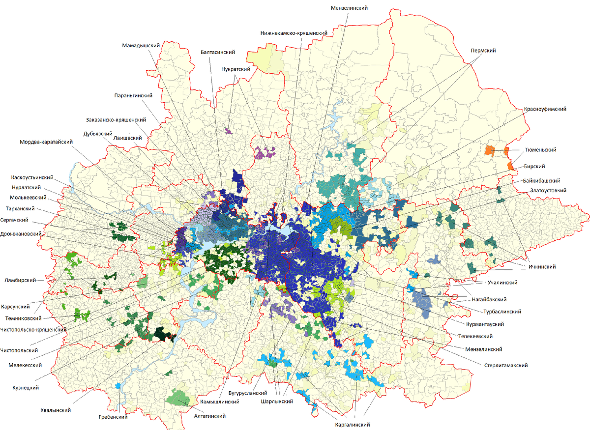 Синий цвет - Казанские татары Как мы видим на той территории где находятся все основные города Волжской Булгарии, живут Мишари и Чуваши.