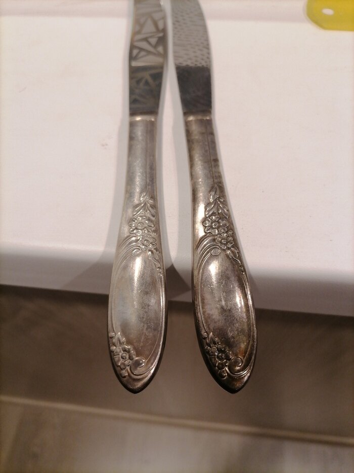 Что делать с ножами, которые еще ваша бабушка надежно хранила в серванте до особого случая, который так и не наступил, а у вас на кухне давно уже обжились ножи попроще из ИКЕА или Ашана. Как вариант: сделать ножам небольшой декор, распределить между членами семьи и начать использовать)))) Маркировка делалась с голографическим эфектом (под разным углом узор бликует разным цветом). Кстати, у этих ножей серебрянная ручка, немного почерневшая от времени. Но и ее можно восстановить с помощью того же лазера. Не идеально, ибо химически будет более чисто, но все же такая чистка имеет место быть. Ну и вспомнил, что предыдущий пост не завершил информацией о максимальной глубине гравировки без смены фокуса. Именно на такую глубину мне удалось заглубиться при старте из максимального расфокуса в минус (источник располагается ниже фокусного расстояния до заготовки). Пост автора Environmentalist. Читать комментарии на Пикабу.