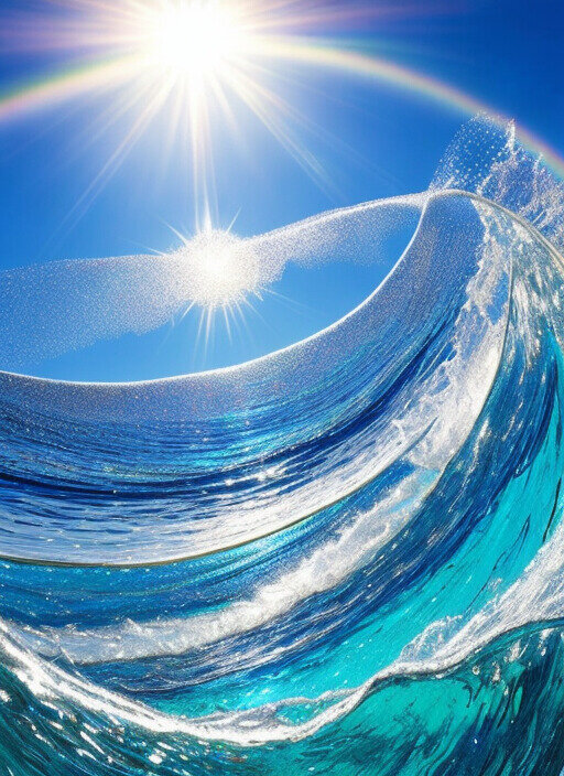 Золотые и серебряные искры ниспадают каскадом и танцуют на гребне могучей волны, переливаясь неземной красотой. Солнечный свет отражается от воды, создавая завораживающую игру радужных оттенков. Атмосфера безмятежная и чарующая. Сверкающие волны завораживают своим лучезарным сиянием, перенося его в волшебное царство природы. *Текст и изображения сгенерированы ии. #арт #ии #море #волны #лето #природа #ai #art