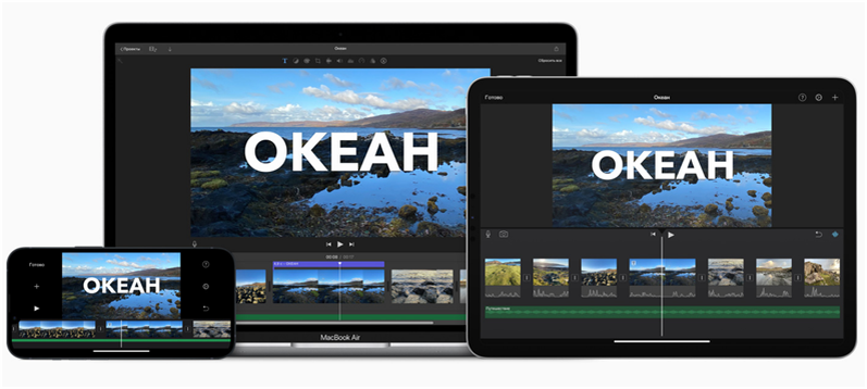 № 3. iMovie Язык: русский. Цена: бесплатно. С iMovie проще проявлять себя и создавать незабываемые видео студийного качества. При этом начать монтаж можно на iPhone или iPad, а закончить на Mac. Функционал впечатляющий: есть хромакей, коллекция кинематографических титров, работа со скоростью, запись аудио и другое. Доступна работа со слоями, можно накладывать видеоролики друг на друга. Монтаж не вызывает трудностей, а видео получаются как у профессионала. Множество зрелищных спецэффектов и фильтров высокой четкости. В приложении есть эффект зелёного экрана, который позволит оказаться в любой точке мира.