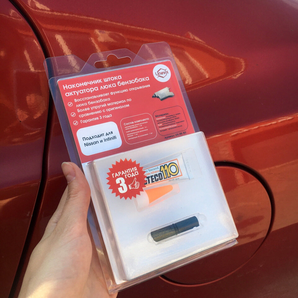 История, которая знакома многим автовладельцам Nissan и Infiniti: приехали на автозаправку зимой, пытаетесь открыть люк бензобака, но ничего не выходит. Крышка основательно примерзла и не открывается автоматически. Пытаетесь открыть лючок ручную. В этот то момент и происходит поломка — наконечник штока актуатора просто ломается. При этом крышка начинает самопроизвольно открываться и закрываться, а про автоматическое открывание лючка приходится забыть. Покупка и установка нового акутатора люка обойдется около 7 000 рублей. Но решить проблему можно гораздо проще и дешевле — заменить сломанный наконечник штока актуатора на новый из ремкомплекта. Стоимость такого ремонта всего 489 р. Наконечник штока изготовлен из полиацетали методом литья. Это прочный, устойчивый к механическим нагрузкам материал. В состав ремкомплекта:
