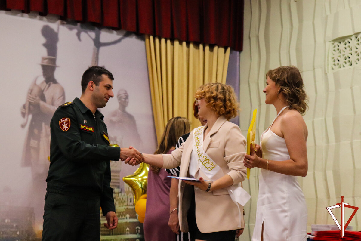 С успешным окончанием учебы школьников, родителей и педагогический коллектив образовательного учреждения от имени руководства и всего личного состава регионального управления Росгвардии поздравил майор Руслан Абдуллаев.