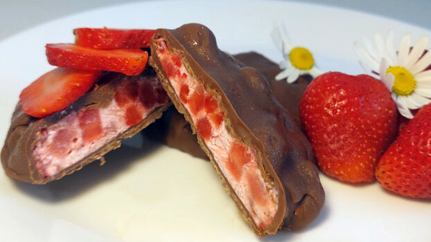 Как сделать мороженое дома? Очень просто! Среди наших рецептов уже есть несколько вариантов домашнего мороженого. По ним можно приготовить в домашних условиях самые разные виды мороженого! Настоящее сливочное мороженое у вас дома Три рецепта домашнего мороженого, которое легко приготовить вместе с детьми Сорбет из дыни с лимонным соком Сегодня предлагаю два рецепта мороженого - летний освежающий десерт с клубникой и сливочное лимонное мороженое! Летний освежающий десерт с клубникой Ингредиенты: - клубника 300 г; - греческий йогурт 120 г; - шоколад 150 г; - подсолнечное масло 30 мл Приготовление: 1. Клубнику моем, убираем листочки и очень мелко нарезаем, весь выделившийся сок сливаем. Йогурт берите густой. В миске смешиваем ягоды с йогуртом, всю выделившуюся жидкость убираем. На доску выкладываем смесь, формируем в кружки и убираем в морозилку на ночь. Заготовки должны хорошо заморозиться. 2. Шоколад топим в микроволновке импульсами по 30 секунд или на водяной бане. Миску под шоколад бе