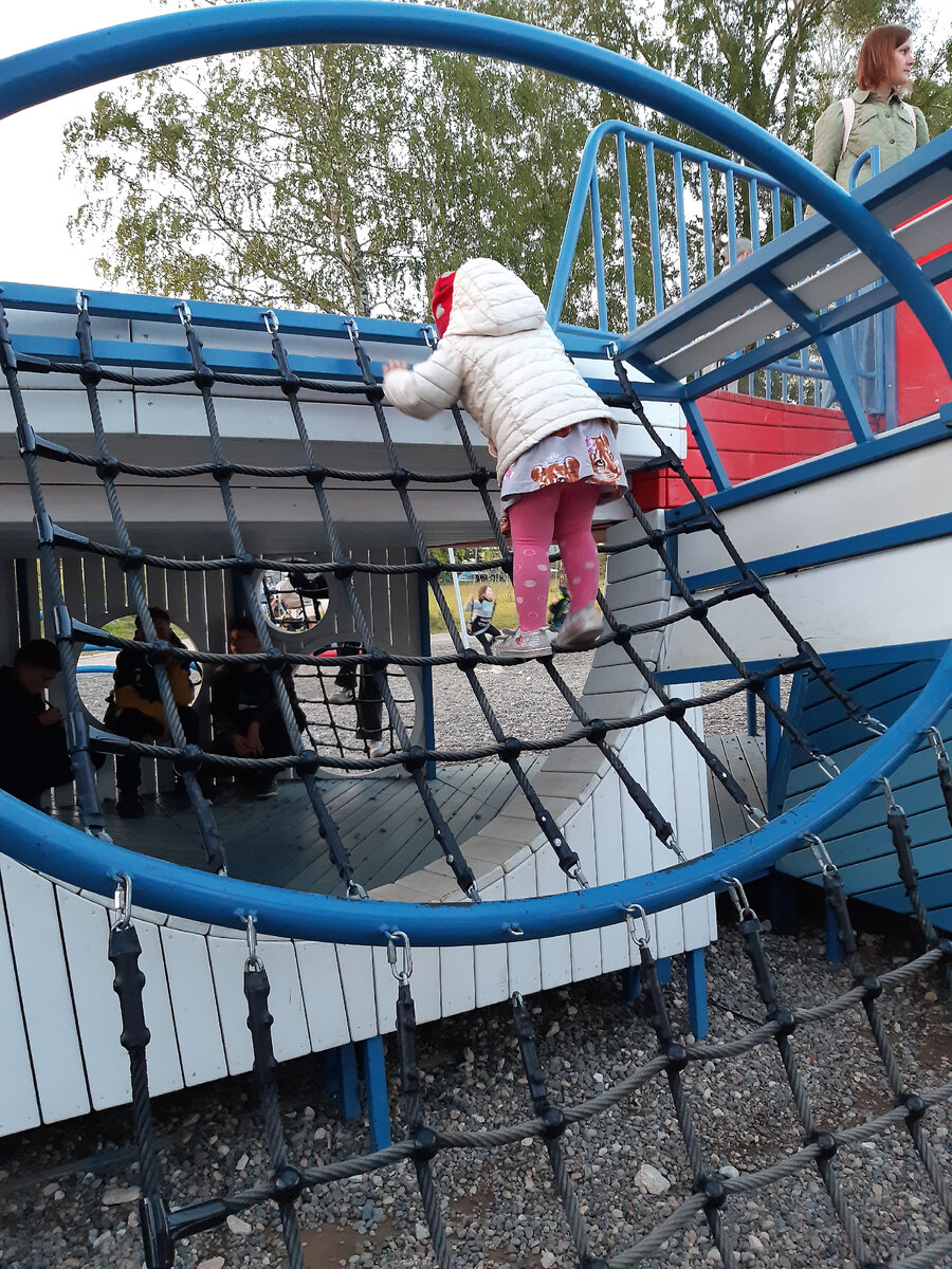 К вечеру выглянуло солнышко, потеплело- вылезли мы с Аннушкой на улицу. Я полоть, малышка "липить". Не справилась я и с половиной грядки, как ребёнку стало скучно. Хотела я пригласить "нянек" из родни, позвонила племяннице, а она большой компанией собиралась на день молодёжи в райцентр. Пригласила и нас. Я сначала отказалась, а потом думаю, да гори оно всё... Нарядились, взяли кофты-куртки-шапки на вечер и махнули на праздник вдвоём. Муж ехать не захотел- ему дома одному с бутылкой интереснее. А вот сосед увязался с нами- глядишь, дорогу оплатил)))). Дети качались на качелях, лазили по Кораблю,