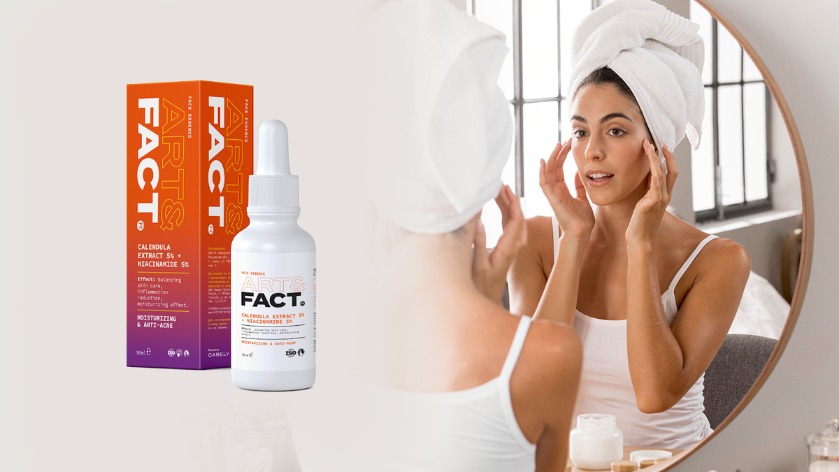 Правильный уход за чувствительной и проблемной кожей — задача не из простых. Кожа с неровностями, покраснениями и другими несовершенствами требует особого, комплексного и деликатного ежедневного ухода. Ключевой продукт — тот, что поддерживает здоровье кожи и укрепляет ее естественные защитные механизмы. В статье познакомим вас с волшебной эссенцией. Что за эссенция такая? Увлажняющая и выравнивающая эссенция с экстрактом календулы и ниацинамидом. Она разработана специально для бережного ухода за проблемной и чувствительной кожей, восстанавливает и укрепляет природную защиту, но при этом не оставляет ощущения стянутости или жирности. Работает на глубинном уровне, улучшает состояние эпидермиса, успокаивает и улучшает его внешний вид. Это происходит благодаря двум активным ингредиентам: экстракту календулы и ниацинамиду. Подробнее о календуле и ниацинамиде в составе Календула обладает противовоспалительным свойством. Ее часто используют для улучшения состояния кожи, уменьшения покраснений