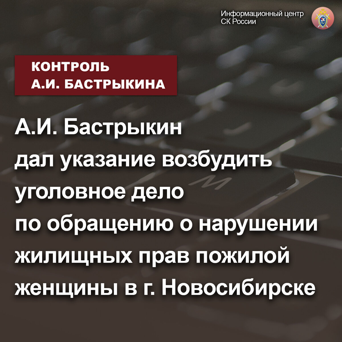 А.И. Бастрыкин дал указание возбудить уголовное дело по обращению о нарушении жилищных прав пожилой женщины в г. Новосибирске