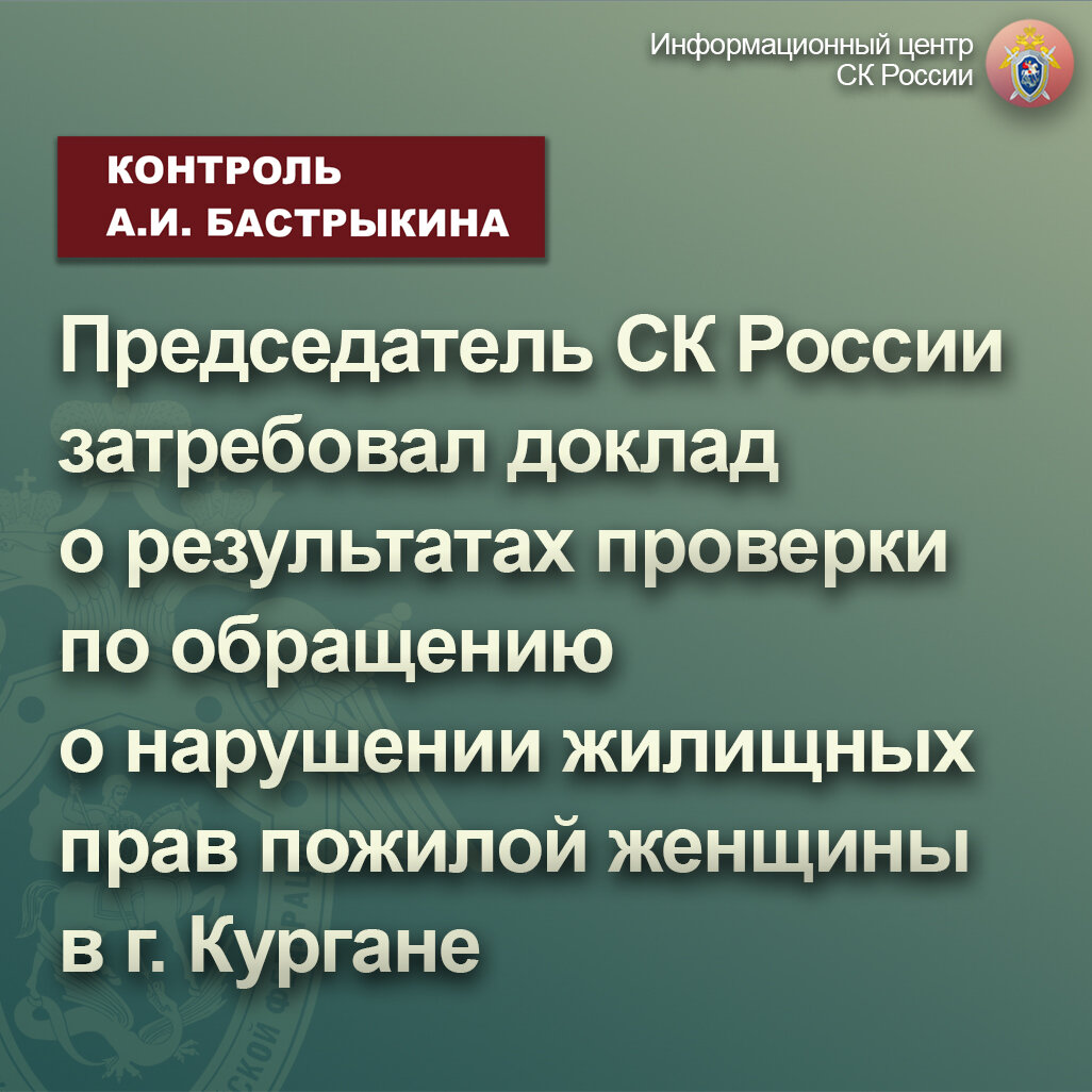Председатель СК России затребовал доклад о результатах проверки по обращению о нарушении жилищных прав пожилой женщины в г. Кургане