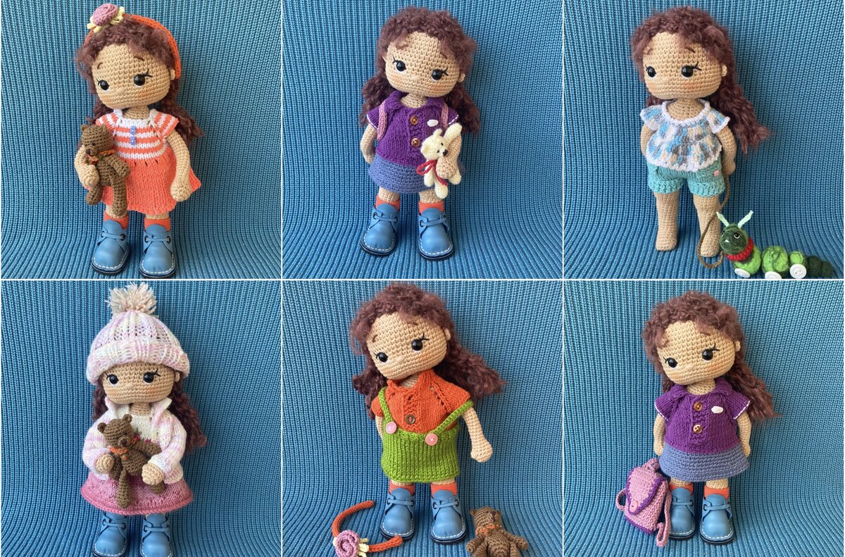 А вот и семейное дефиле. Пять кукол в разных нарядах. Семейка создана на заказ и, кажется удалась😜