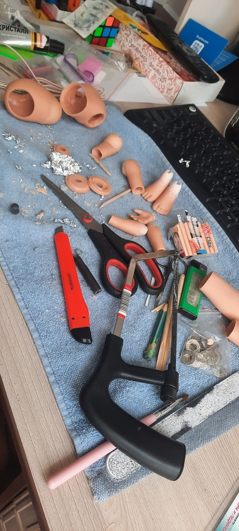 Адельку я ошарнирила, но так хотелось сделать лучше, что я неосознанно все время просматривала объявления с телами от Паолок. Вообще, мне очень нравится у этих куколок ограниченное количество цветов "кожи" - светлый, латино и темный. Все. И никакого мучения с разнотоном при подборе заводского тела. Шарнирные тела я тоже просматриваю, но пока меня все время что-то в них не устраивает. А еще мне интересно, как и чем ошарниривают родные тела Паолок.