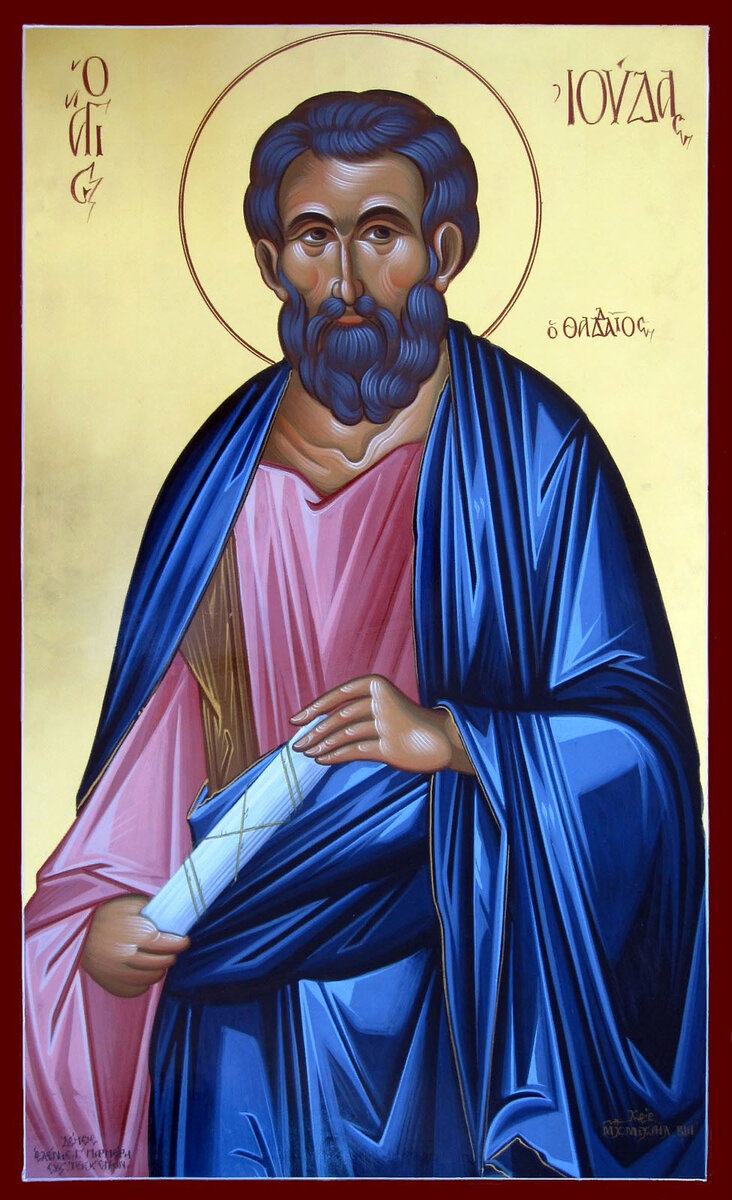 Святой апостол Иуда, из числа 12-ти учеников Христовых, происходил из рода царя Давида и Соломона, был сыном праведного Иосифа Обручника от его первой жены.