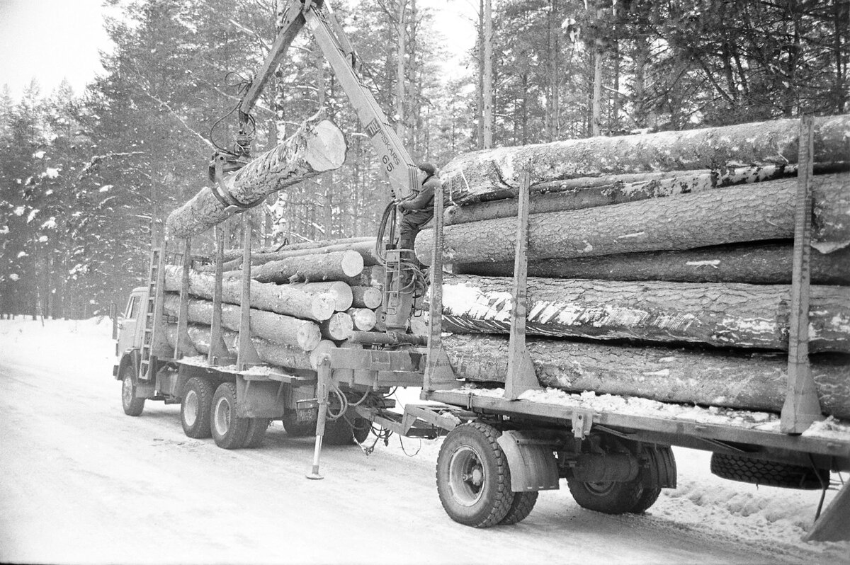 Для начала. Лесовозы или, по-другому, сортиментовозы – это грузовики, которые снабжены навесным оборудованием для транспортировки всех видов основной продукции лесного хозяйства – деревьев, хлыстов, сортиментов, технологической щепы и древесной зелени. Первый образец автопоезда-сортиментовоза КАМАЗ был создан по инициативе Министерства лесного хозяйства и лесной промышленности Латвийской ССР и показан на международной выставке «Лесдревмаш-79». Сортиментовоз был создан на базе шасси автомобиля КАМАЗ-53213, прицепа ГКБ-8352 и финского гидравлического лесопогрузочного крана ФИСКАРС-65С. Сортиментовоз мог перевозить до 30 кубометров лесоматериалов длиной от 2 до 6 метров. Тогда же на базе шасси автомобиля КАМАЗ-53213, прицепа ГКБ-9383, грузоподъёмностью 15 тонн и финского гидравлического крана ФИСКАРС-12000 был изготовлен автопоезд-хлыстовоз КАМАЗ с полезной грузоподъёмностью 22 тонны. Автомобили КАМАЗ хорошо зарекомендовали себя в лесах Латвии и Министерство лесного хозяйства и лесной про