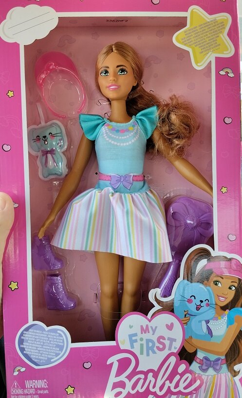 Всем привет! Сегодня я напишу и покажу, куклу которую я купила около двух месяцев назад, а именно шатенку My first Barbie. Я заинтересовалась куклами этой серии еще с момента появления первых промо-фото, И вот не так давно они появились в "Детском мире", покупка была очень спонтанной, мне было нужно куда-то деть бонусы с карты, пока они не сгорели, и я увидела её, ту куклу, которую я очень хотела "приобрести и пощупать")) В серию входят 4 куклы, блондинка, шатенка, брюнетка-азиаточка(ну ОЧЕНЬ красивая, но у нас я её не видела) и афроамериканка. Из молдов я могу определить только - Милли-блондинку. А теперь, коротко о главном: Рост куклы 34 сантиметра, тело полностью выполнено из матового винила, ноги и руки гнутся на два щелчка, можно согнуть и на три, но третий отщелкивается, волосы качественные не лезут - напоминают старый Мателловский Саран, прошивка хорошая, лицо более/менее ровное, печать не растровая. А еще Барбейка приятно тяжеленькая в руках, я люблю тяжелых кукол - для меня