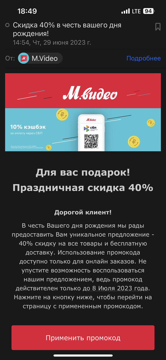 Всех приветствую. В день рождения все магазины начинают дарить подарки. ТО подвеску по промокоду, кто бесплатную доставку, кто промокод на скидку. Так как мы делаем ремонт, нам необходима техника. И вот тут приходит счастливое письмо, что один именитый магазин дарит скидку 40% на всю технику. Обычно там цены выше, чем на просторах интернета, но с учетом скидки выходят очень приятные цены. И я стала просматривать и сравнивать, да, цены оказались очень привлекательные со скидкой. Я уже с мужем согласовала, что сядем выберем, что купить. А хранить к бабушке поставим, пока ремонт. Список получился внушительный. Встроенный холодильник, посудомоечная машинка, измельчитель. водонагреватель, газовая панель, духовой шкаф и думала кондиционер раз такие скидки. Уже мысленно все в квартире расставила и радовалась, что хорошо сэкономила. Рассказала еще подруге о скидке и предложила через себя планшет заказать, она давно хотела. Но часа через два у меня начали возникать сомнения о возможной такой щ
