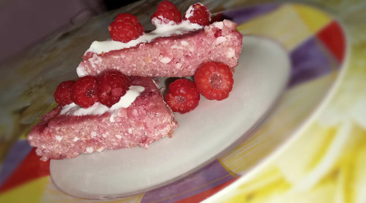 Малиновое суфле "Ягодка" Нам понадобится: -200г.творога -2ст.сахара -1 яйцо -2ст.манной крупы -100г.малины + ягоды для украшения -сметана. 1.Творог протереть до однородной массы. Размять малину с сахаром и добавить в творог. В полученную смесь вбить яйцо, добавить манную крупу и хорошо перемешать. 2.Форму для выпечки смазать маслом,выложить в нее творожно-малиновую смесь и испечь(примерно 20 минут при средней температуре) 3.Готовое суфле охладить, полить сметаной и украсить ягодами малины.Приятного аппетита 😋