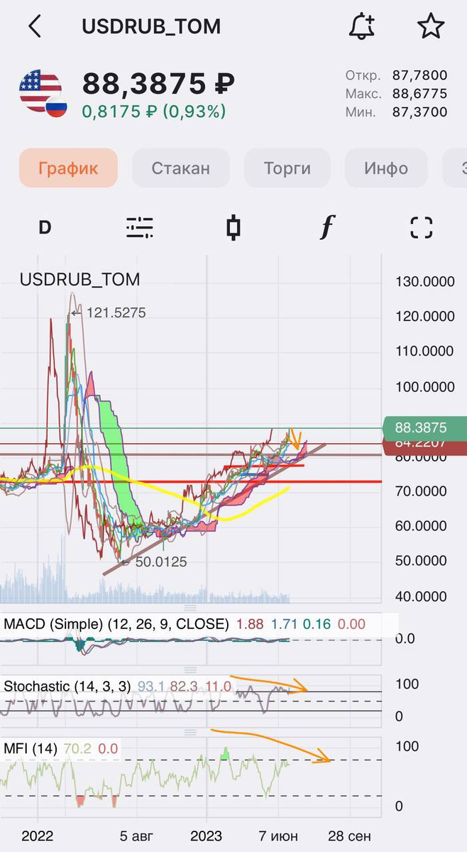 ЦБ РФ 🇷🇺 заявил, что не видит рисков финстабильности в ослаблении рубля, учтет его влияние на инфляцию на СД в июле "Курс у нас плавающий. Динамика курса определяется потоками платежного баланса. В первую очередь - тем, что происходит на стороне экспорта и на стороне импорта. Обращаем внимание, в последние месяцы цены на основные товары российского экспорта идут вниз, и мировые цены, даже не оглядываясь на те дисконты, которые применяются по отношению к мировым ценам на товары российского экспорта. И курс отражает это ухудшение во внешних условиях", - сказал Заботкин. 🤡 В целом, из заявления можно сделать несколько выводов: 👉 Мы ожидали, что все будет не очень с балансами 👉 Мы поднимем ставку ЦБ 21 июля 👉 Для РФ продолжают ухудшаться внешние условия 📉 При дивергенция и перегретость просто дикая,ближайшие уровни поддержки на 81 🤷♂ *не является ИИР #Рынок_акций #фондовый_рынок #комментарии_аналитиков