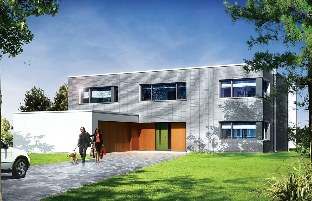 Роскошный современный дом на одну семью из 4-7 человек. В этом чрезвычайно удобном и просторном особняке есть все, что вы ожидаете от комфортного дома. Все спроектировано логично и продуманно. Функциональный интерьер здесь сочетается с хорошими пропорциями комнат и минималистичной эстетикой. Площадь дома: 374,23 м 2 Несмотря на современную форму, дом выглядит сдержанным и уютным. Рядом с домом организована деревянная терраса и бассейн. Остекление двухэтажной гостиной приносит свет в интерьер дома, здесь вы можете общаться с окружающей природой. Основными принципами формирования внешнего вида были: комбинированный фасад, а также благородные натуральные материалы. Интерьер виллы организован вокруг высокой гостиной, которая с окружающими помещениями на первом этаже и балконом наверху создает роскошное жилое пространство. Комнаты большие, полные света, спальни удобные с гардеробными или большими встроенными шкафами. Количество комнат, ванных комнат и подсобных помещений оптимально для