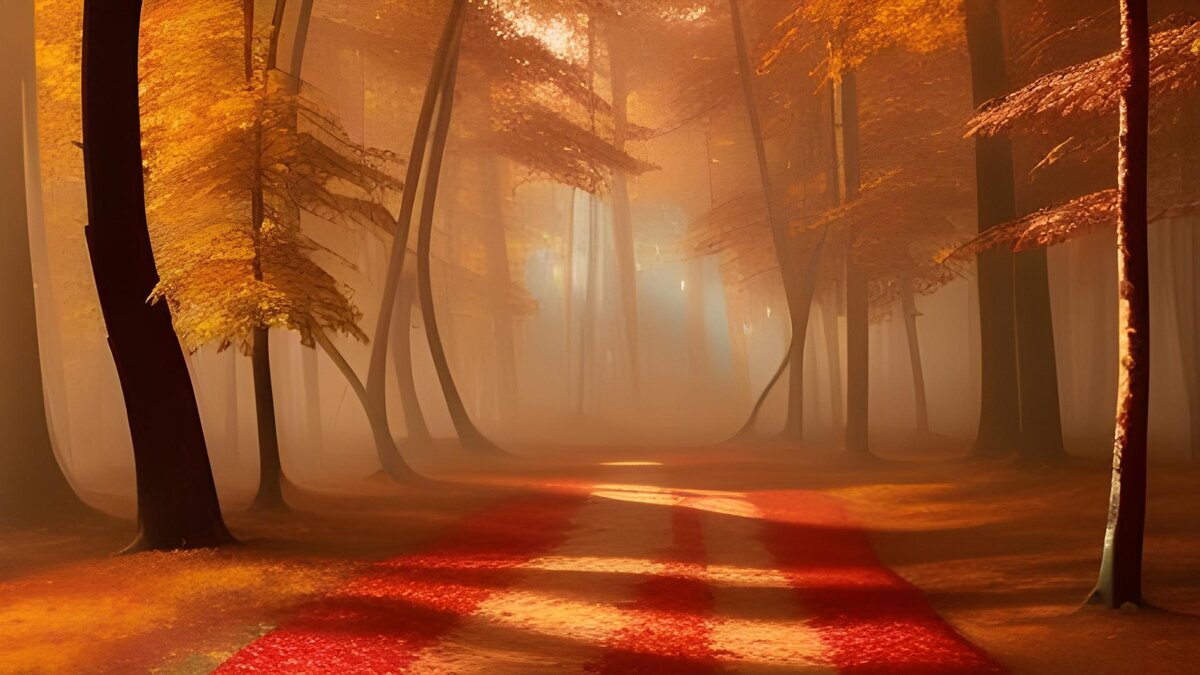 Осенний лес, окруженный густыми деревьями, стал идеальным местом для прогулки для молодой пары, Джеймса и Элизы. Листья на деревьях пылали яркими оттенками красного, оранжевого и желтого, создавая красочный ковер под их ногами.