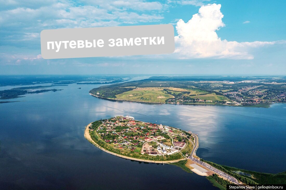 Когда уже отходили от берега, в салон закатилась тётенька в белоснежной рубашке с погончиками и тёмной форменной юбке. Маленькая и кругленькая, она решительно просеменила между рядами в конец салона, подёргала двери, ведущие на корму, и сурово прокричала: — Граждане! Двери не открывать! Штраф — три тысячи! "Недорого..." — вдохновился народ, но тётенька передумала. — Нет! Пять тысяч! — перекрикивая двигатель категорически объявила она. Пассажиры загомонили и заинтересованно закрутили шеями, видимо оценивая свои хулиганские возможности. А тётенька, шустро-шустро просеменив обратно, на прощание обернулась и жизнерадостно добавила: — А что вы хотели? Метеору — 33 года! Здесь лучше вообще ничего не трогать! Так романтически началось наше путешествие в град Свияжск. Есть там недалеко от Казани такой старинный город-остров, основанный ещё Иваном Грозным. Когда пятьсот лет назад Грозный заколебался брать Казань, он велел построить этот самый Свияжск, чтобы не таскаться с войском туда-с