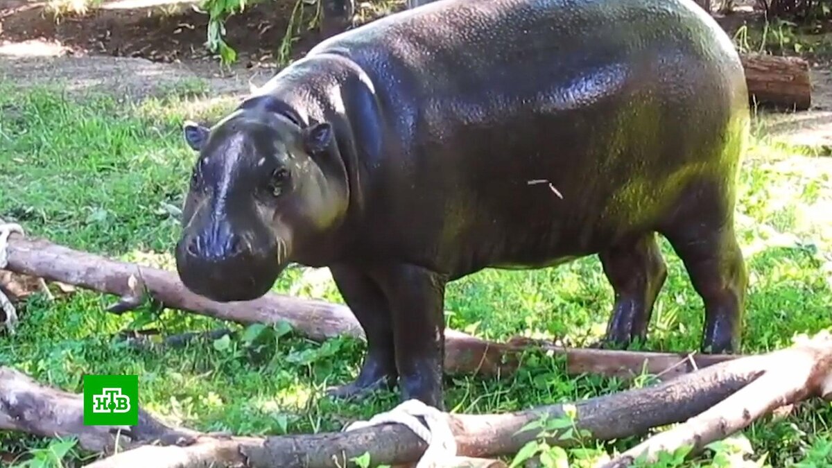 Личный бассейн и навес от солнца появился у одной из обитательниц Московского зоопарка — карликовой бегемотихи Ксюши.