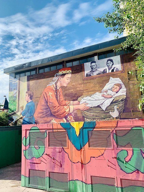 Автором этой новой работы является известный уличный художник Рустам QBic. Его работа основана на семейных ценностях, культурном коде и надежде на передачу мудрости от уходящего поколения к нынешнему.