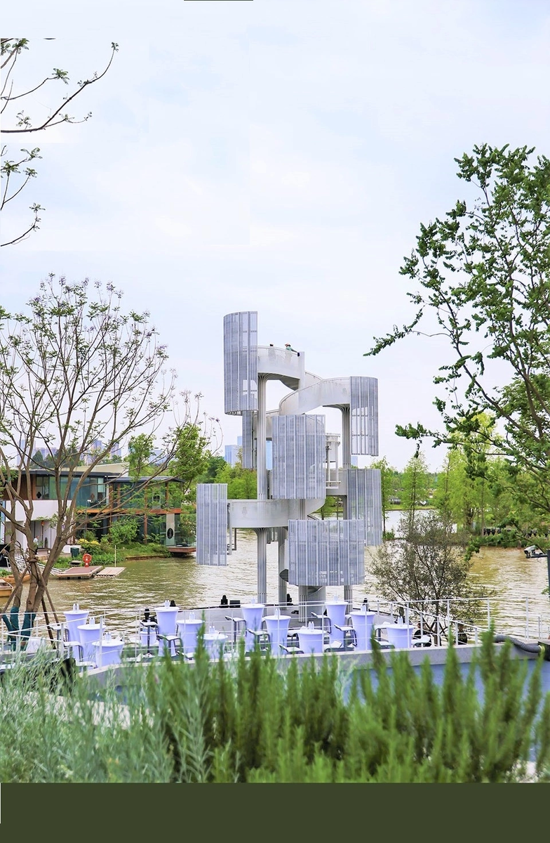 The“Tower of Life”/Wide Horizon.Luxe lakes Eco-city,Chengdu,Sichuan,China. “Башня жизни” на “Пирсе времени” с формой, "растущей" вверх, состоит из подвесных экранов на разных уровнях. Мультимедийный арт-объект, а также площадка для обозрения ландшафта. Люди идут к озеру по извилистой тропе, впереди появляется "плавучий" акцент на воде. Когда они поднимаются, виды с площадок меняются, также меняется их настроение. Любопытство и сенсорная стимуляция побуждают людей приближаться к нему и наблюдать за ним. Мы надеемся, что “Башня жизни” могла бы стать публичным художественным музеем, в котором люди могли бы участвовать, а ее появление могло бы вызвать у людей дискуссию о публичном искусстве. Независимо от того, используется ли она как ландшафтная башня в обычном режиме или в различных тематических мероприятиях, люди могут найти соответствующее развлечение. В сезон дождей, когда уровень озера повышается, тропа и платформа у подножия башни погружены под воду, создавая ощущение "парения" все