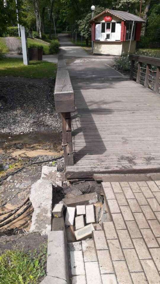Разгулявшиеся на нынешней неделе дожди приобрели сегодня, 30 июня, статус обильных. Как сообщает пресс-служба администрации Воронежа, осадки привели сегодня к частичному размытию покрытия рядом с деревянным мостом, что напротив искусственного озера в Центральном парке. Для обеспечения безопасности посетителей зелёной зоны города доступ на мост временно ограничили.