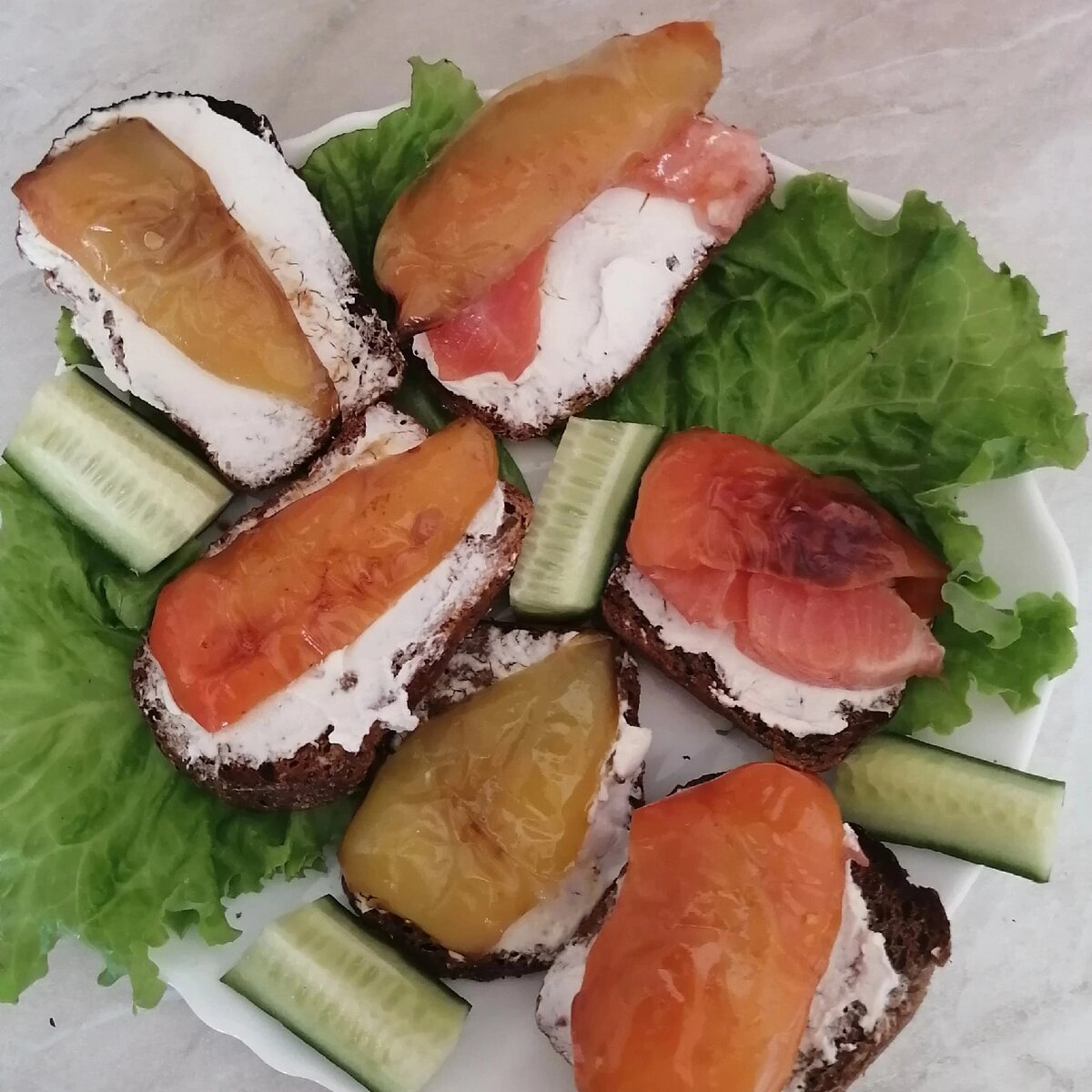 Тосты с творожным сыром, болгарским перцем, и форелью