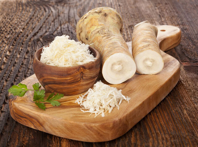 Хрен – незаменимая приправа ко многим холодным мясным и заливным блюдам. Без его пикантной остроты закуски теряют свою прелесть. Сам корень почти не имеет вкуса. Но когда его разрезают или трут на терке, выделяется горчичное эфирное масло, от которого, кстати, и слезятся глаза. Есть хрен надо в умеренных дозах, поскольку он раздражает слизистую оболочку желудка и кишечника. В то же время сок хрена, разбавленный водой (1:10), – отличное средство при расстройствах желудка. Этим же раствором полощут горло при ангине, стоматитах, зубной боли. Кашицу из корней (без сока) через пергаментную бумагу прикладывают к больным местам при радикулите, болезнях суставов. Компрессом могут быть и листья хрена. Выкапывать корень хрена можно и ранней весной, и летом. Хотя собирают урожай, как правило, в октябре. И если не выкопать чисто, то из любой части корня, оставленной в земле, на следующий год вырастет новое растение. Зацветает же оно на второй год жизни, но семян практически не дает. Поэтому и разм