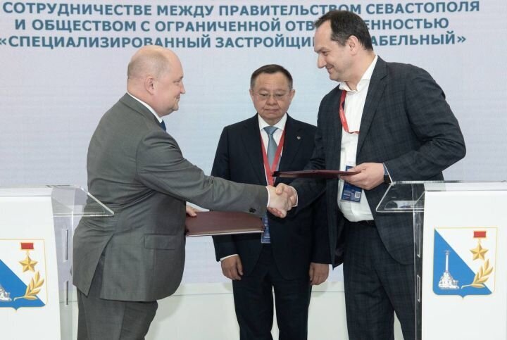 В ходе Форума правительством и бизнесменами города федерального значения подписаны соглашения в сфере туризма, строительства, логистики, финансов. Подробности – в обзоре FederalCity. В рамках комплексного развития территории 7-го километра Балаклавского шоссе достигнута договоренность с предприятием "Специализированный застройщик "Корабельный"". В присутствии главы Минстроя Ирека Файзуллина дан старт возведению нового микрорайона на 400 тысяч квадратных метров жилья. Кроме того, планируется построить 4 детских сада, среднюю школу, поликлинику, спортивный комплекс с бассейном. Кроме жилых многоэтажных домов, в планах – возведение торгового центра, нескольких парковок, пешеходного маршрута с велодорожками, зеленой зоны площадью около 35% от всего микрорайона. Это самый крупный на данный момент проект КРТ – застройщик вкладывает в него не менее 40 миллиардов рублей. На полях ПМЭФ-2023 была подписано трехстороннее соглашение о сотрудничестве между правительством Севастополя, банком "Россия
