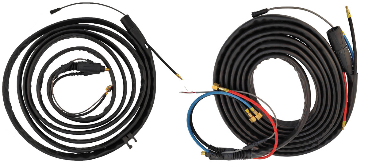 При производстве некоторых видов сварочных работ не хватает стандартной длины сварочного кабеля. В таких случаях необходимо использовать специальные удлинители Они помогут увеличить сварочный кабель на 8 или 16 метров. В нашем интернет-магазине представлены следующие удлинители бренда Parker: При этом для горелок с воздушным охлаждением параметры рабочего тока не изменятся. Для горелок с жидкостным охлаждением необходимо учесть потери по длине при выборе рабочего тока. К примеру при присоединении удлинителя на 8 метров к горелке на 4 метра максимальные параметры для удлинителя будут 450A (постоянный ток DC) и 315A (переменный ток AC). Если присоединяемая сварочная горелка рассчитана на меньший рабочий ток, то потери будут пропорциональными. Параметры для остальных вариаций присоединения горелки и удлинителя: 8м + 8м = 16м: 410A (DC), 290A (AC);