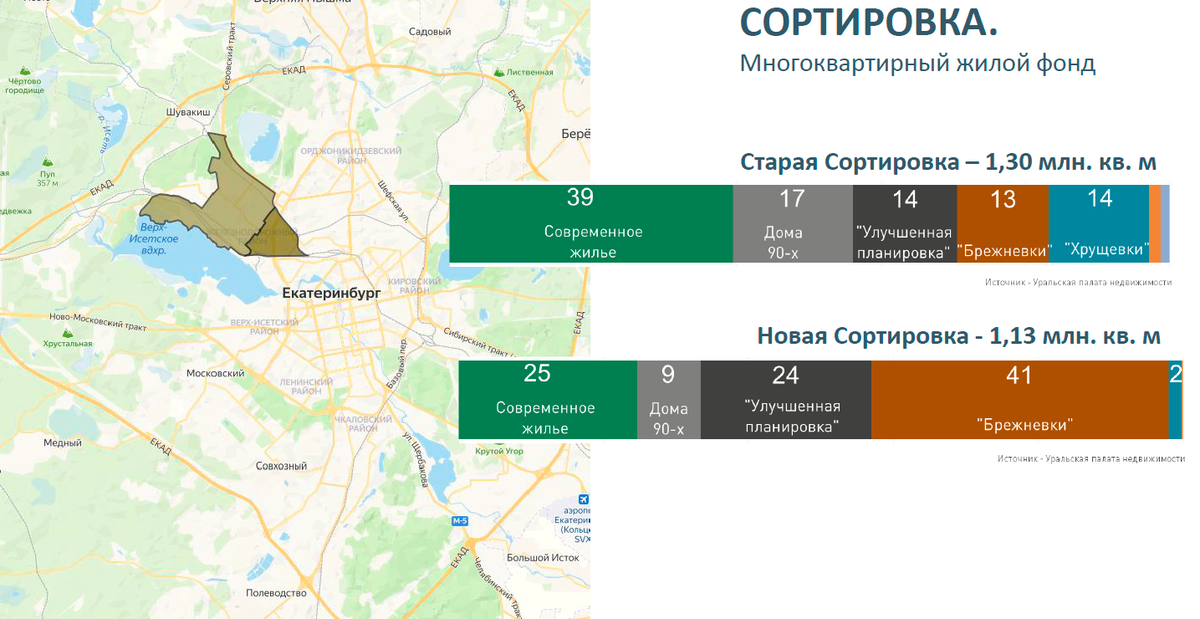 Район Екатеринбурга, в котором работают коллеги, непростой, а лёгких ответов на сложные вопросы обычно не бывает. В данном случае важна сама инициатива – собрать ключевых девелоперов района, представителей власти, историков и поговорить о направлениях развития территории. Интересный и правильный опыт, который мы всегда поддерживаем. Подготовили небольшое выступление о рыночном контексте развития рынка жилья на Сортировке. Структура жилого фонда