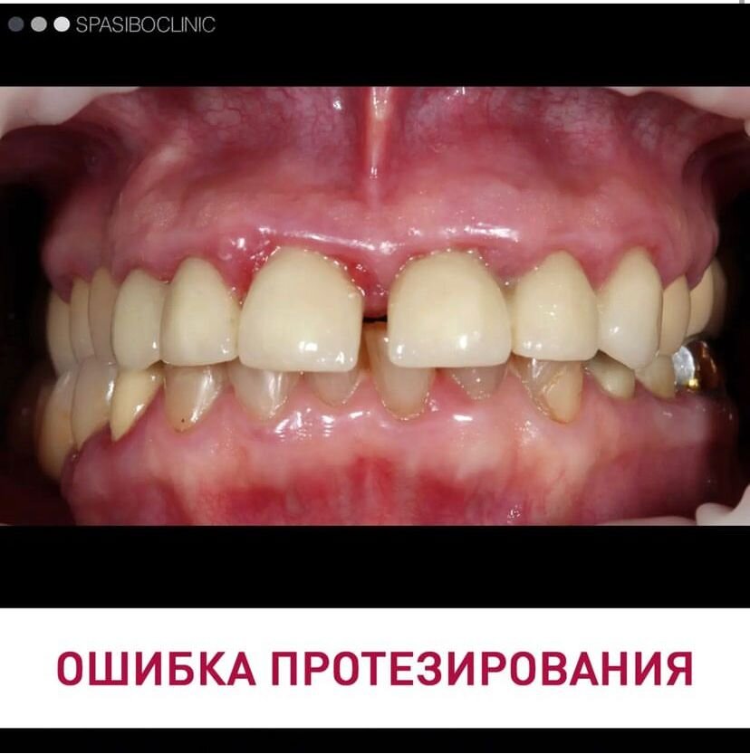 Неправильное протезирование всего за год привело к сильному воспалению, зубы разъехались и отклонились вперед.Пародонтит.Лечим!