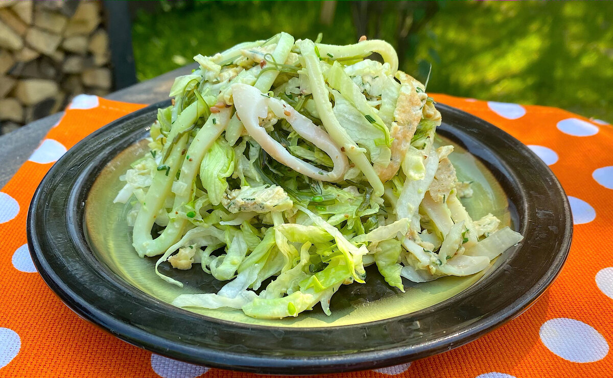 Оригинальный салат с кальмарами: приготовила отличное блюдо для летнего ужина, майонез не требуется