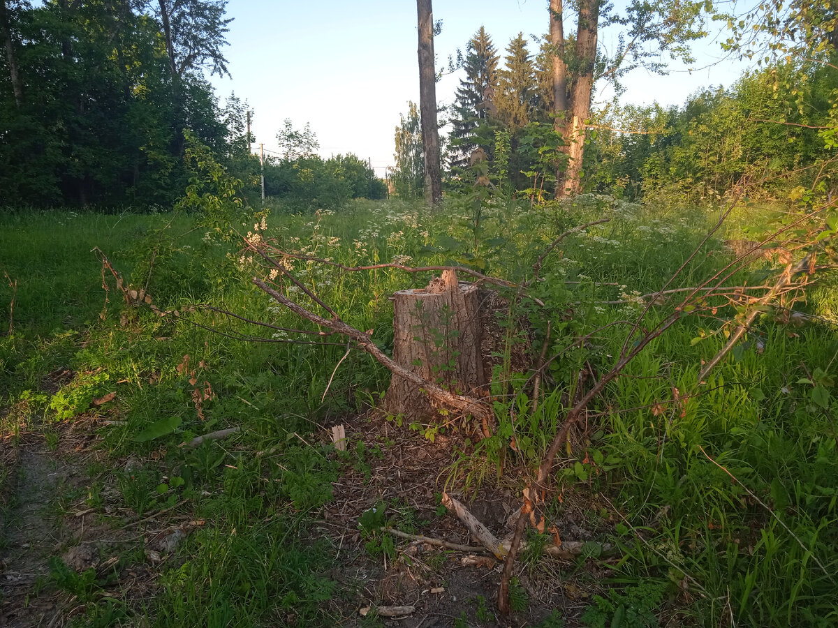 На самом деле, речь идет о небольшом лесочке, в черте деревни, где спилили много тополей, наверное что-то строить собрались. Там же есть котлован с чем-то недостроенным, и остатки от деревенского сгоревшего клуба. В общем, и без этого невеселое место, а тут еще и деревья спилили, и сейчас это место выглядит, как большой лесоповал и бурелом.