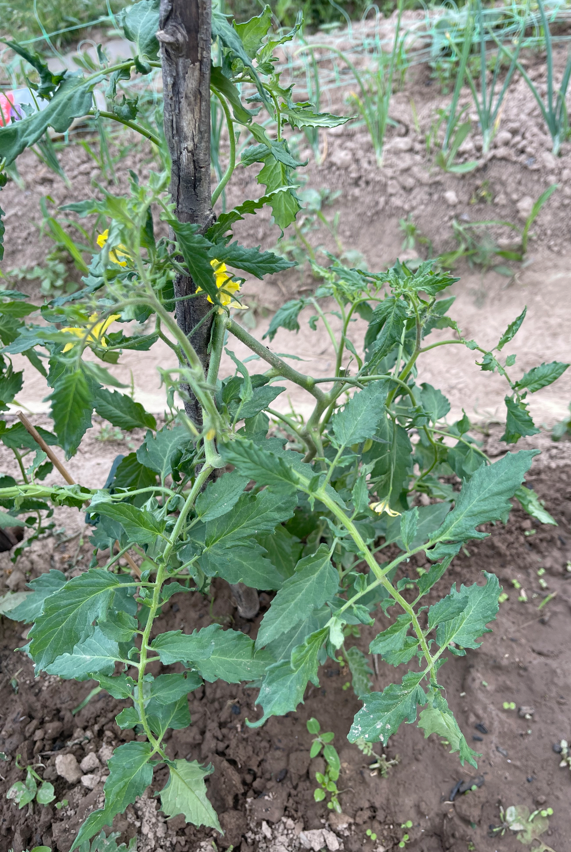 Лето есть лето. Еще неделю назад мы укутывали в спанбонд кусты помидоров, чтобы не замерзли, которые за месяц едва подросли на пару сантиметров, потому что ночные температуры держались в пределах 6-8 градусов, как внезапно, словно по мановению волшебной палочки, все изменилось. А всего-то стоило ночным температурами подняться до 15-18 градусов. И все, что называется, "поперло" в рост. Под спанбондом выросшие помидоры уже упирались в укрытие, ограниченное дугами, а некоторые и вовсе стали закручиваться, потому что некуда было расти. Теперь их очень сложно выпрямить. Сотни пасынков, хотя неделю назад я все лишнее оборвала. Почти все кусты в цвету. Но и этого мало - Джек Пот (из своих семян) уже образовал первые завязи. Вот это преображение! На единственном кустике перца тоже уже есть завязь. Прекрасно чувствуют себя свекла и лук - на той грядке, где высадила семена в самом начале мая и они успели попасть под последний майский дождь. А вторая грядка свеклы, посаженная неделей позже, не вз