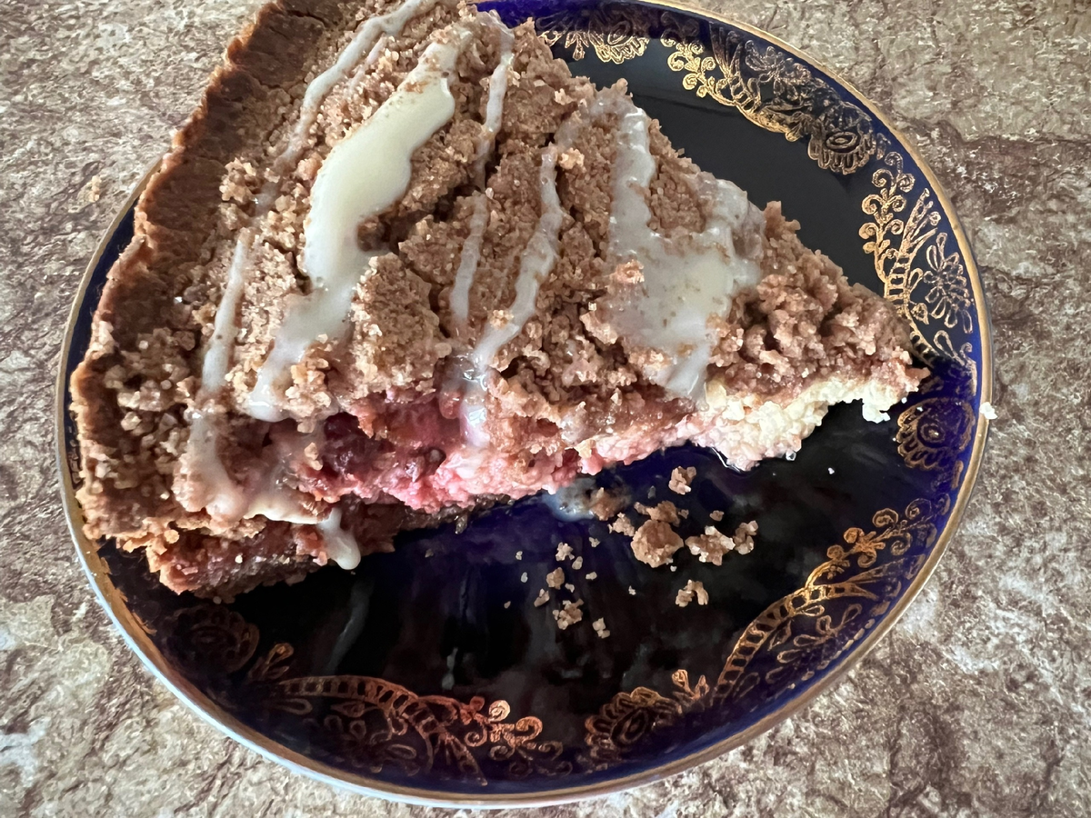 Время приготовления: 1 час 20 мин Ингредиенты: Для теста: 300г. - муки, 200г. - сливочного масла, 100г. - сахара, 5ст.л какао. Для начинки: 500г. - творога (5%), 100г. - сметаны, 2 яйца, 10г. - ванильного сахара, 1ст.л манной крупы, 150г. - сахара, 100г. вишни. Глазурь (по желанию): 50г. - темного шоколада, 1ч.л. растительного масла. Готовим тесто: муку просеять горкой, добавить сахар, какао и перетертое сливочное масло. Растереть в крошку. В форму выложить 2/3 теста, примять, сделать бортики. Приготовить начинку: перетереть творог, добавить сметану, сахар, яйца, манку. Перемешать и добавить вишню без косточек. Распределить начинку форме, а сверху выложить оставшееся тесто. Запекать при 180 градусах 50 минут. По желанию можно украсить сгущенкой.