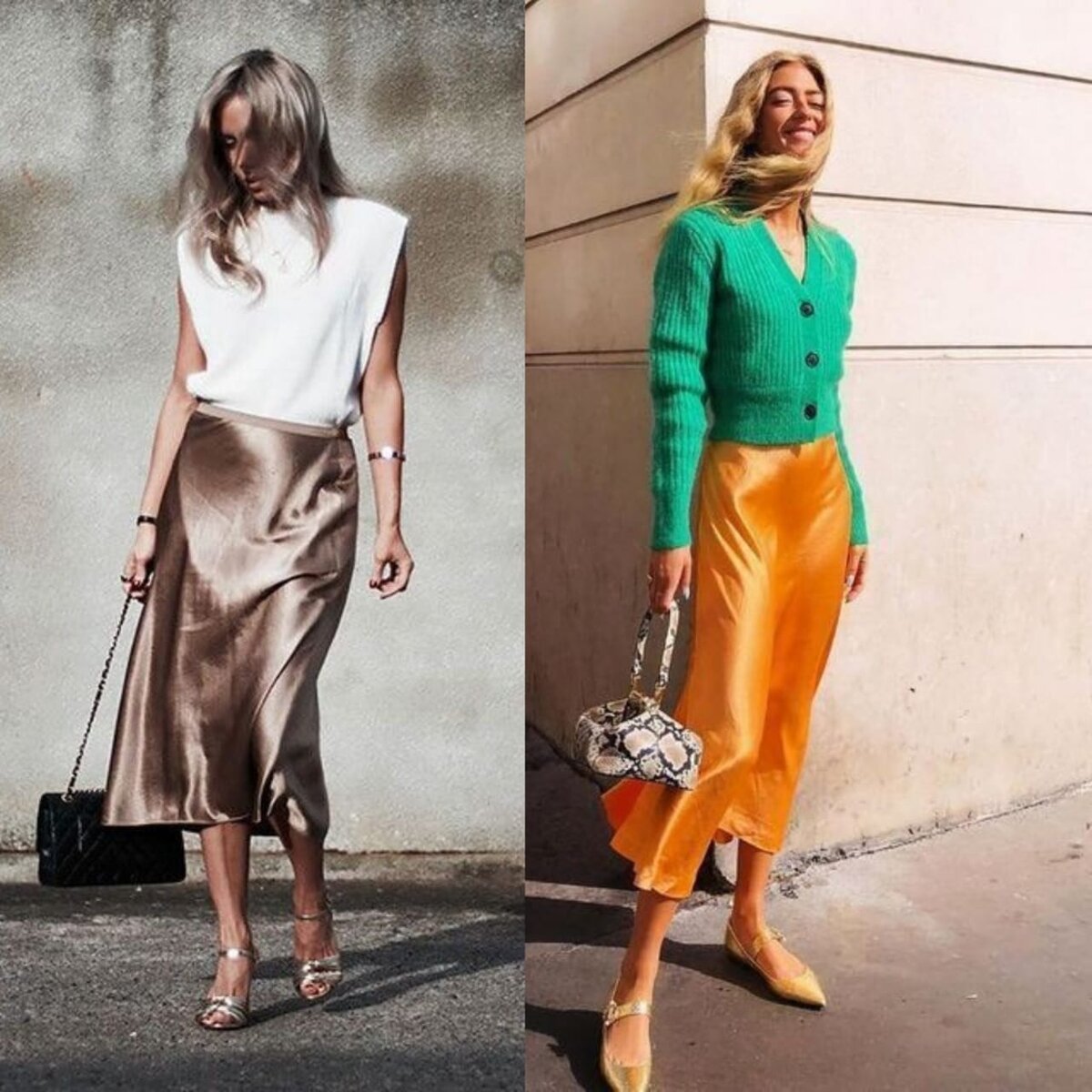С чем и как лучше сочетать модную в этом сезоне атласную юбку