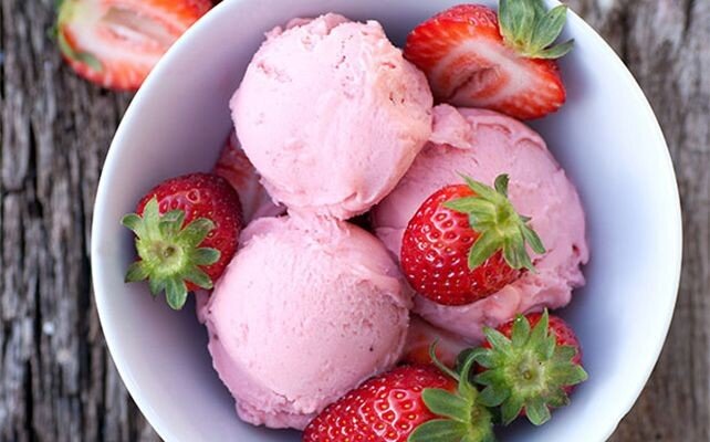 - После этого фруктовое бананово-клубничное мороженое готово к подаче!