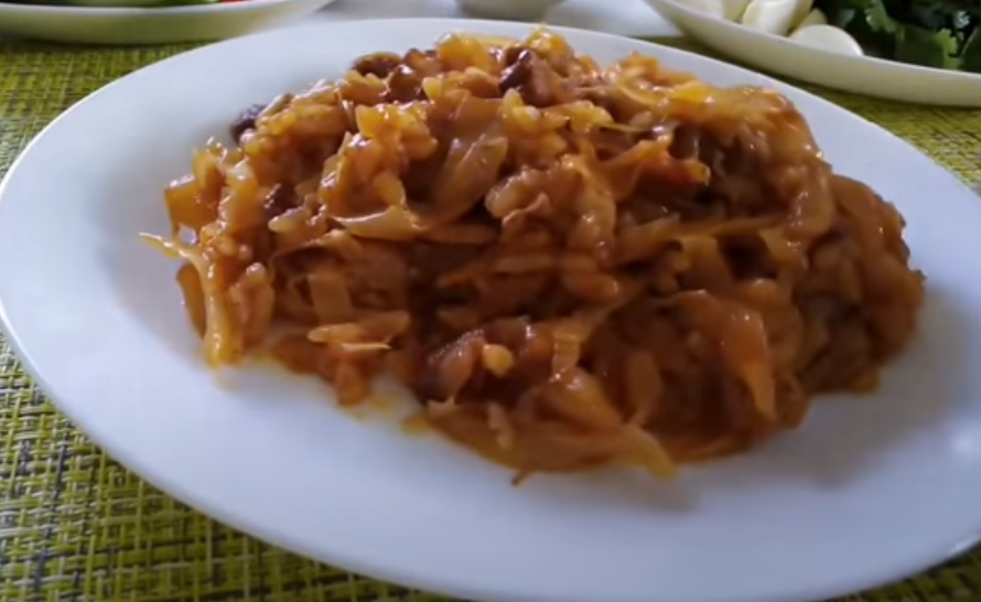 4) Теперь положить капусту, не перемешивать ее, сделать огонь ниже среднего и готовить все под закрытой крышкой 30 мин.