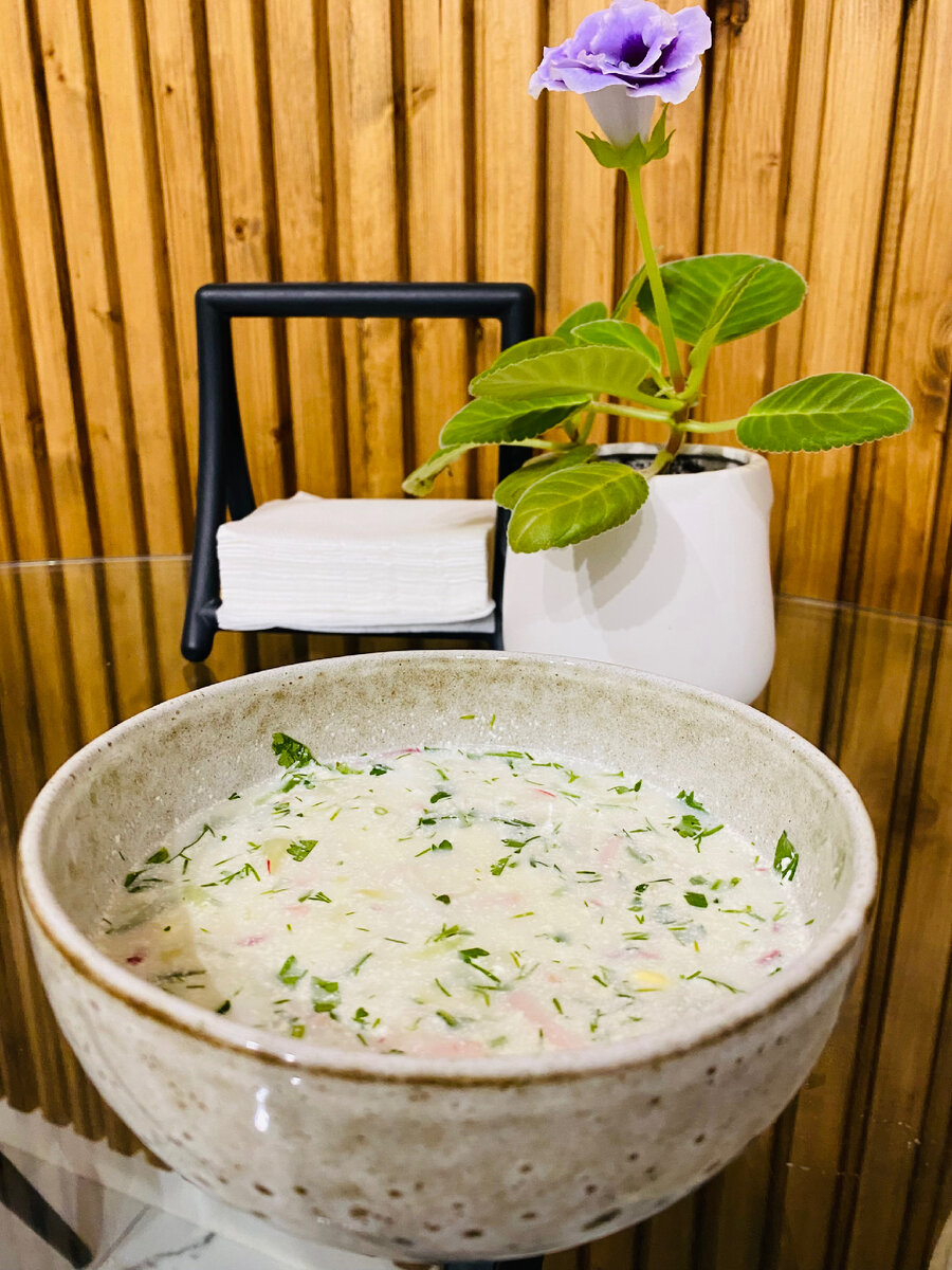 ИНГРЕДИЕНТЫ: Картофель - 4-5 шт. Яйца - 8 шт. вареные Огурец - 4 шт. средний Редис - 6- 8 шт. можно без нее Колбаса вареная - 150-200 гр. Зелень смесь - петрушка, укроп, кинза, лук. Сметана - на заправку. ( можно майонез) Вода кипяченая - 2,5 -3 литра ( кто какой густоты любит). Соль, перец, лимонная кислота - по вкусу. ПРИГОТОВЛЕНИЕ: Картофель, яйца, колбаса - порезать примерно ровными кубиками. Редис и огурец натереть на крупной терке. Измельчить зелень. В воде растворить соль, лимонную кислоту( по вкусу должно получиться с кислинкой). Все ингредиенты отправить в воду, добавить сметану и перец. Тщательно перемешать. Всё готово! Приятного аппетита. Буду благодарна каждому за подписку и лайки. Благодаря вам канал будет развиваться, а я радовать вас рецептами.