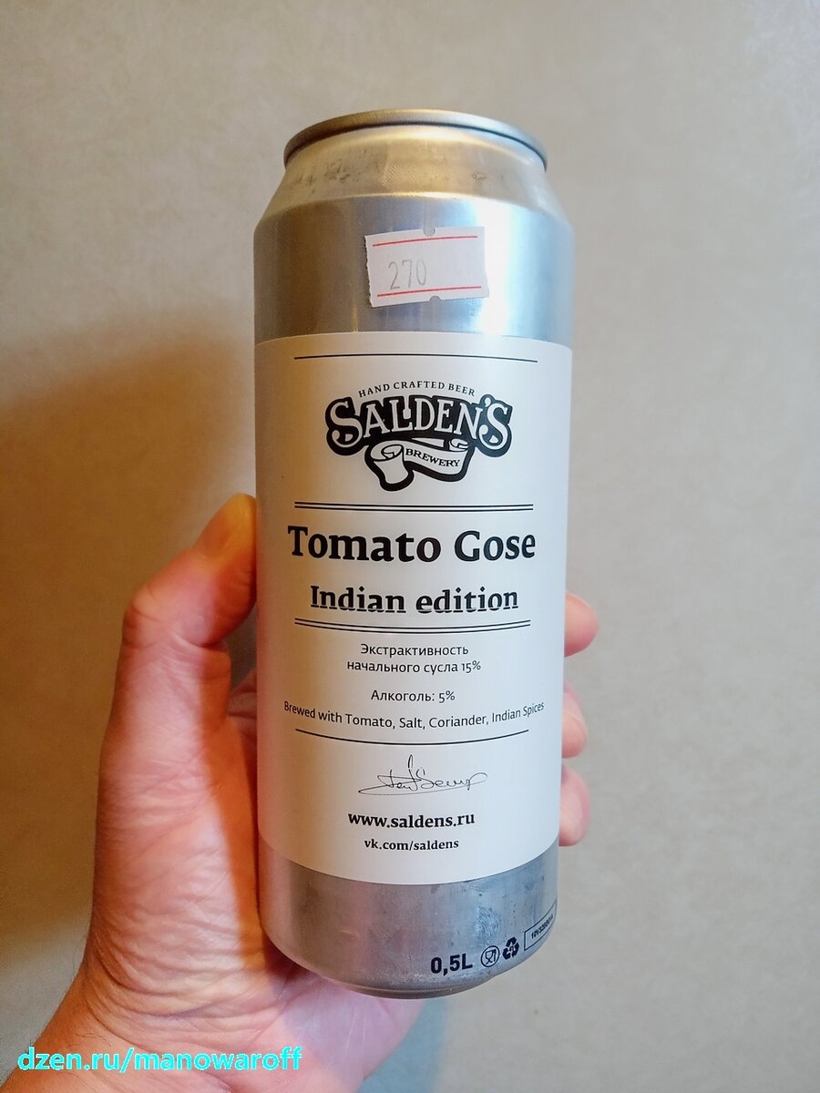 Тульская она потому, что сварена в Туле, пивоварней Salden's Brewery. Ну а индийская она из-за названия - Tomato Gose Indian Edition. У товарища Сальникова я уже перепробовал кучу томаток в различных интерпретациях - что-то было ничего так, что-то так себе. Посмотрим, что получилось на этот раз. Сорт прошлогодний - дебютировал в мае. У меня же на банке проштампована дата 28 марта этого года. Ну а дегустация была 19 июня. Срок годности составляет 180 суток при хранении в холодильнике. В составе присутствует томатная паста, соль и специи (не указано какие конкретно). Хотя на лицевой стороне банки еще и кориандр упомянут. ТТХ: Выглядит стандартно для сальниковских томаток. Т.е. как пиво со вкусом пива - янтарное, прозрачное. Пены немного, живет недолго. Аромат весьма невыразительный - карри на первом плане, томаты в фоне. Во вкусе кисловатые томаты, немного соли, карри, возможно, нотки гарам масалы. Послевкусие кисловато-солоноватое, с привкусом индийских специй. Пиво жиденькое, пьется ле