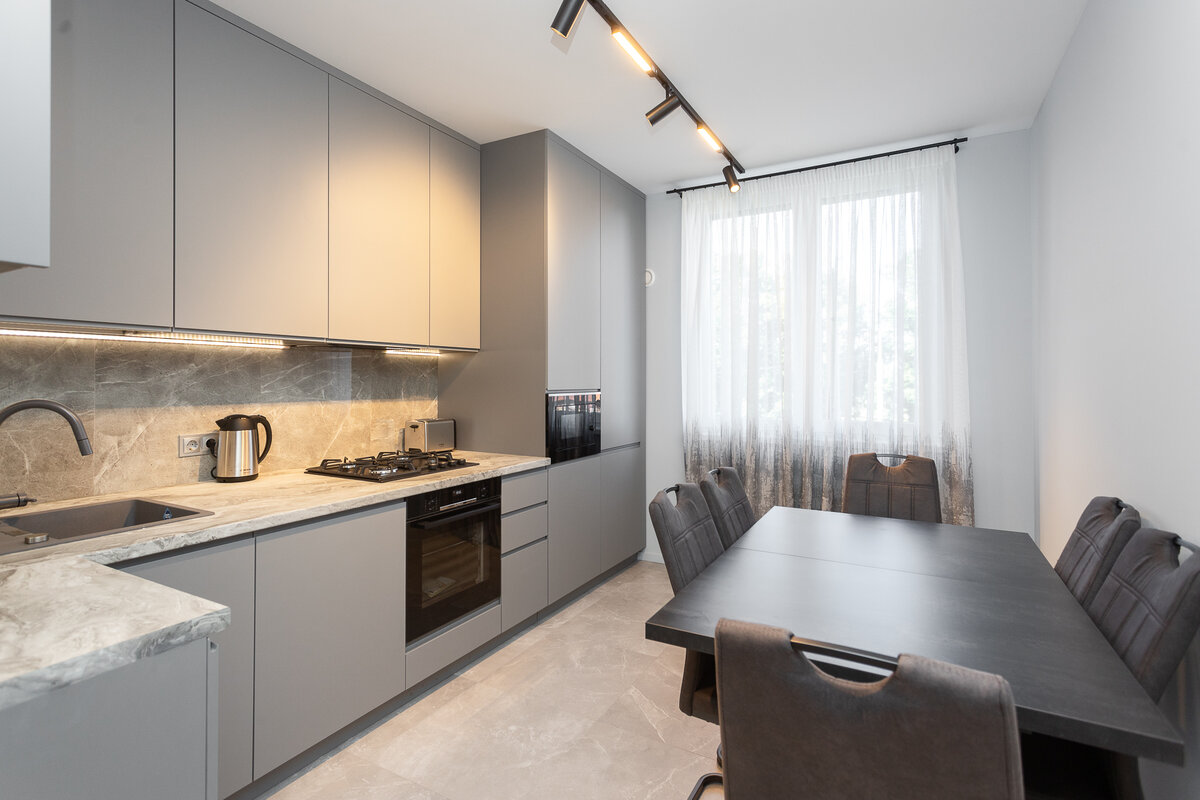 Современная кухня - это пространство, которое является сердцем дома. Она должна быть удобной и функциональной, а также вписываться в общий стиль интерьера помещения. Одним из наиболее популярных стилей кухни является современный. Он наиболее точно передает дух нашего времени – строгость и лаконичность. Фасады в такой кухне часто бывают гладкими, без лишних деталей. Однако, для того чтобы подчеркнуть элегантность и уникальность дизайна кухни можно использовать фрезы, которые придают фасадам оригинальный вид. Фреза Арт - это один из видов резьбы по дереву. Она способна украсить даже обычный фасад, сделав его уникальным и оригинальным. Фрезеровка фасада производится по всей ширине фасада в виде буквы L. Такие фасады выглядят стильно и дорого, т.к. сама ручка окрашивается вместе с фасадом в единый цвет. Важным элементом в современной кухне является цвет. Наиболее актуальным сейчас цветом для фасадов является серый. Он нейтрален, не перегружает интерьер, сочетается со всеми цветами, создает