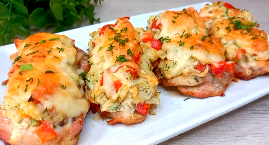 Всем привет! Сегодня приготовим вкусные, сочные, нежные куриные бедра. Такое блюдо отлично подойдет хоть на праздник, хоть на каждый день. Видео - рецепт: Ингредиенты: Куриные бедра - 5 шт (800 г) Кабачок - 1 шт (400 г) Репчатый лук - 1 шт Чеснок - 2 з Помидор - 1 шт Сыр - 100 г Соль, специи по вкусу Для приготовления нам понадобятся куриные бедра, но можно взять и филе грудки. Первым делом снимаем с них кожу, но это по желанию. Далее ножом вырезаем из них кости. Теперь подготовленное филе кладем на доску и хорошенько кухонным молоточком отбиваем. Теперь мясо с двух сторон солим и перчим по вкусу. Я посыпаю черным молотым перцем и сладкой паприкой, специи используйте по своему вкусу. Подготовленное мясо перекладываем на противень с пергаментной бумагой. А теперь займемся овощами. Один молодой средний кабачок очищаем от кожуры. И натираем на средней терке. Одну крупную луковицу очищаем и также натираем на средней терке. Теперь очищаем пару зубочков чеснока и натираем на терке. Один