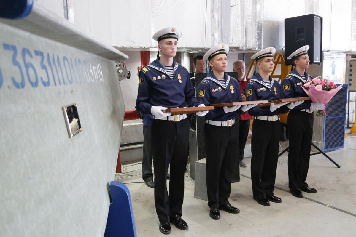 Главнокомандующий ВМФ принял участие в церемонии закладки нового тральщика на Средне-Невском судостроительном заводе