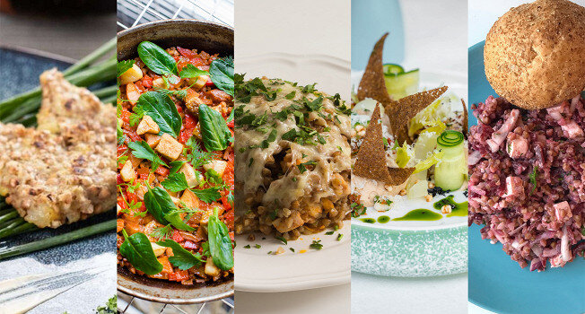 НОВЫЕ РЕЦЕПТЫ С ЛЮБИМОЙ КРУПОЙ Доступная цена — далеко не единственное из достоинств гречки. Эта крупа — важная основа лечебных диет, не говоря уже о наполнении постных дней: долго усваивается, питательна, не содержит глютена, богата железом, да еще и вкусна даже без молока и масла. Недаром в тяжелые времена именно гречка становится продуктом первой необходимость и мгновенно исчезает с полок магазинов. Для многих гречка — это еще и психологический комфорт, ее вкус и легко узнаваемый аромат нам помнится с детства. Одна беда — в традиционных рецептах с гречишной крупой слишком мало фантазии. Откройте любой кулинарный сборник — там сплошные каши. Даже у кудесницы Молоховец около двух десятков одних только каш. И ничего больше. В крайнем случае предлагается кинуть гречку в суп или отварить на гарнир. Хотя гречка способна на большее: она превращается в шелковистый хумус и паэлью с поджаристой корочкой, запросто имитирует мясной вкус в постных котлетах и легко находит себе место в салатах. Р