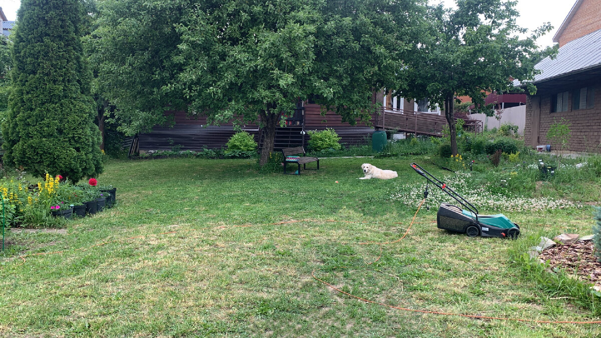 Наконец-то наступило настоящее жаркое лето! Весь день вчера по очереди косили с Сашей траву в саду. Очень медитативное занятие и результат радует глаз, хоть у нас и не классический газон, а обыкновенная, изрядно вытоптанная детьми лужайка.