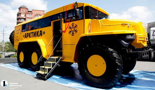 «Урал» показал обновленный арктический автобус. Утверждается, что он сможет перевозить пассажиров по бездорожью и снегу при температурах до минус 50 °С. Первые испытания опытный образец арктического автобуса уже прошел в начале 2022 года в Якутии.
