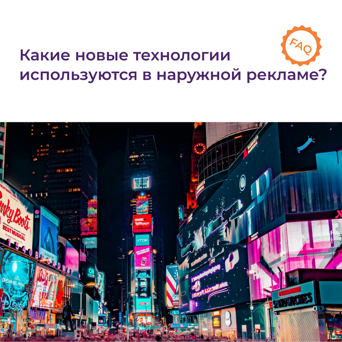 Наружная реклама - один из самых популярных видов рекламы, который используется везде, от больших городов до маленьких поселений. Благодаря технологическим инновациям, наружная реклама стала более привлекательной и эффективной. Вот несколько новых технологий, которые используются в наружной рекламе. 1. Цифровая наружная реклама: это вторжение цифровых технологий в область наружной рекламы. Большинство новых щитов сейчас оснащены цифровыми экранами, которые меняют содержание рекламы в режиме реального времени. Они могут показывать видеоролики, динамические изображения и даже социальные медиа-потоки. 2. AR-реклама: Дополненная реальность (AR) - это технология, которая предоставляет пользователю уникальный опыт взаимодействия с окружающим миром. Сейчас наружная реклама также использует эту технологию. Камеры смартфона могут сканировать QR коды на щитах, чтобы открыть окно AR и получить дополнительную информацию о бренде. 3. Геолокация: Эта технология использует данные GPS для подачи наруж