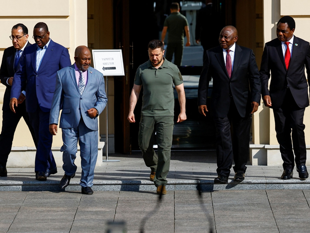 Итак, Африка начала сотрудничать с Россией. Но для начала представители ЮАР, Союз Коморских Островов, Замбию, Сенегал, Египет, Уганду и Конго, встретилась в Киеве с президентом Украины Владимиром Зеленским. Выслушали его «лабуду» о происходящих событиях, покивали, предложили свое видение урегулирования конфликта, которое если коротко заключается в слове «деэскалация» и поехали на экскурсию.
